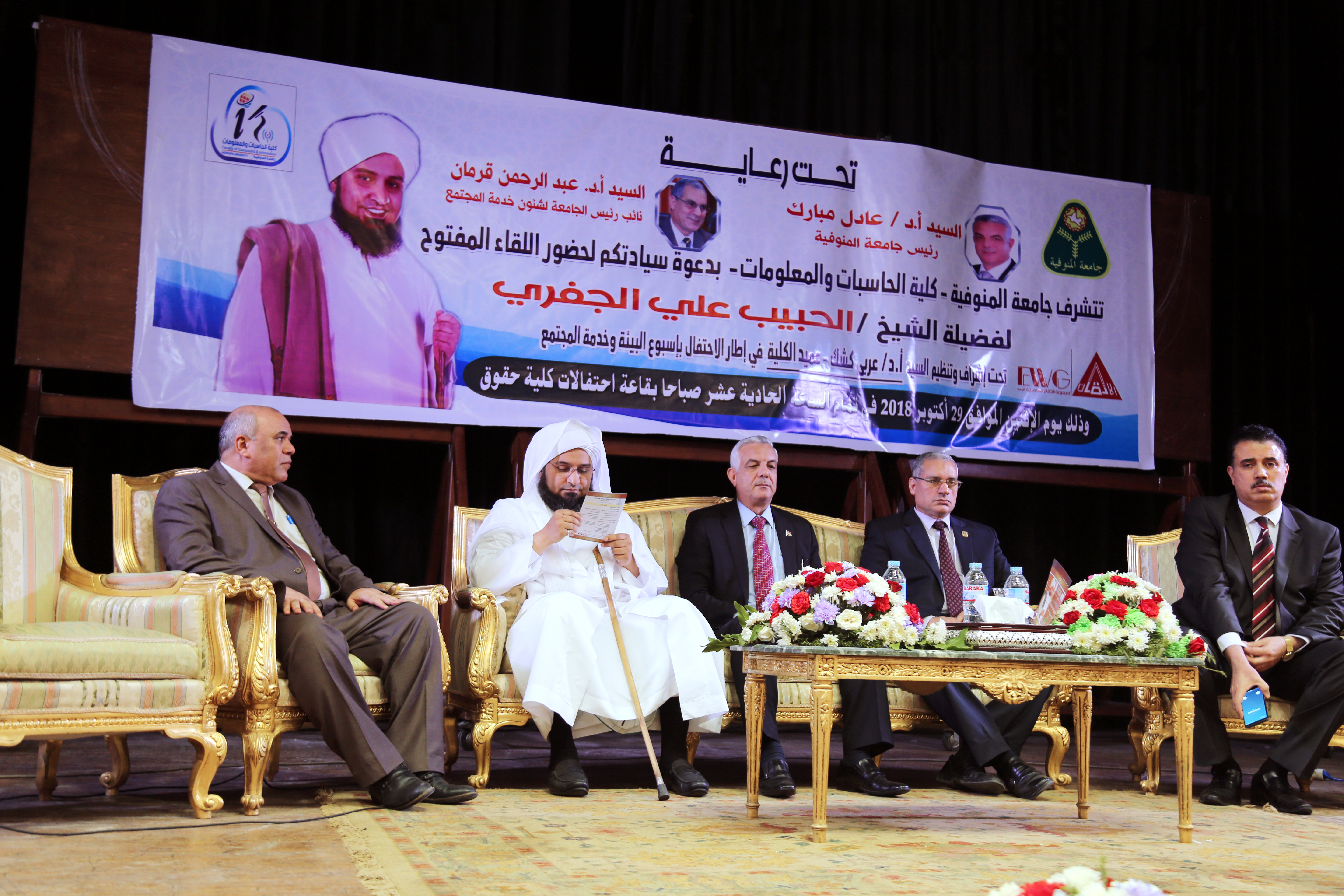 حضر الحبيب علي الجفري، في جمهورية مصر العربية، اللقاء المفتوح مع طلاب جامعة المنوفية اللقاء برعاية الدكتور عادل مبارك رئيس الجامعة والذي نظمته كلية الحاسبات والمعلومات، وذلك في ١٨ صفر 1440، الموافق ٢٩ من أكتوبر 2018.